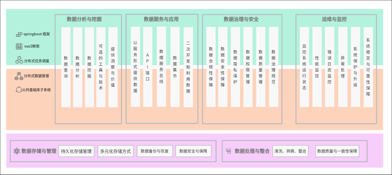 应急管理信息化发展战略规划(2018-2022年)》的“四横四纵”体系框架中,明确提出了要建设先进强大的大数据支撑体系,包括构建全方位获取、全网络汇聚、全维度整合的海量数据资源治理体系,满足精细治理、分类组织、精准服务、安全可控的数据资源管理要求,服务于“统一指挥、专常兼备、反应灵敏、上下联动、平战结合”的特色应急管理体制,为建立高效科学的自然灾害防治体系和安全生产事故预防体系提供基础性、综合性、战略性的可靠数据支撑。